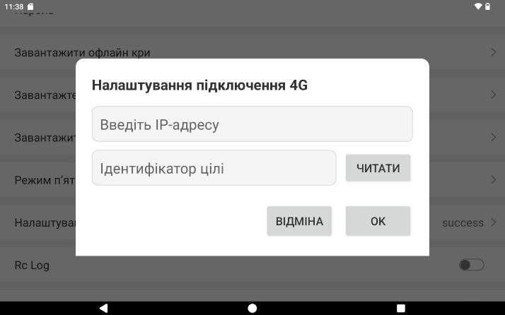 - Якщо з’єднання ПДК з даним БпЛА за допомогою швидкісного інтернету виконується вперше , заходимо в меню налаштувань «My» вибираємо розділ «Налаштування», і натискаємо на перемикач в строчці «Налаштування підключення 4G». В вікні що з’явилось автоматично відобразиться IP адрес, але рядок «Ідентифікатор цілі » залишиться незаповненим.