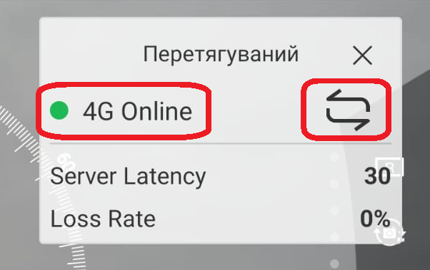 ВАЖЛИВО! При використанні двох ПДК, керування БпЛА виконується одним ПДК з двох (одночасно керувати БпЛА з двох ПДК неможливо), перемикання між ПДК під’єднаним до оптичного швидкісного інтернету та ПДК з радіозв’язком виконується за допомогою розташованої кнопки в меню 4G яка виглядає-