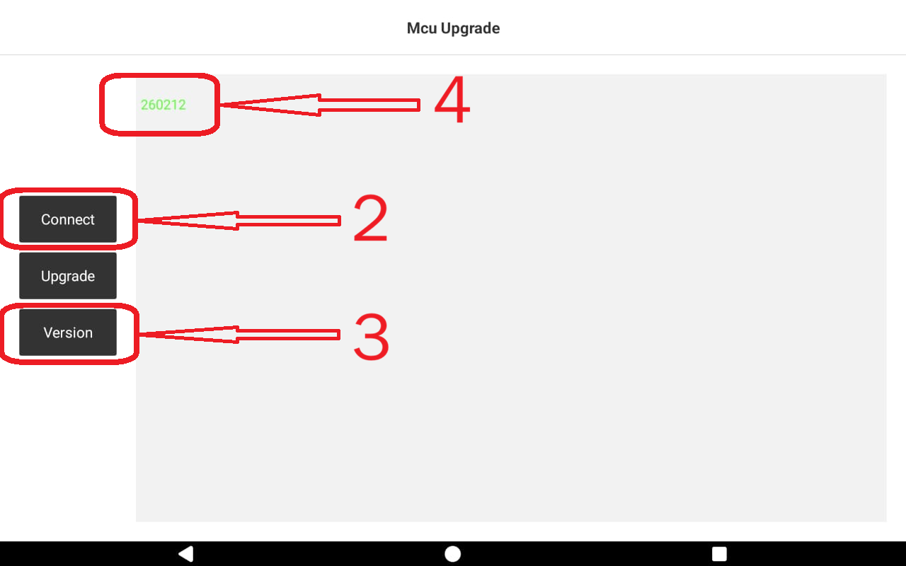Для перевірки встановленої версії MCU заходимо в «Settings Assistant» далі «MCU UPGRADE» натискаємо «Connect» і потім «Version». У верхньому лівому куті зеленим кольором відобразиться версія прошивки: