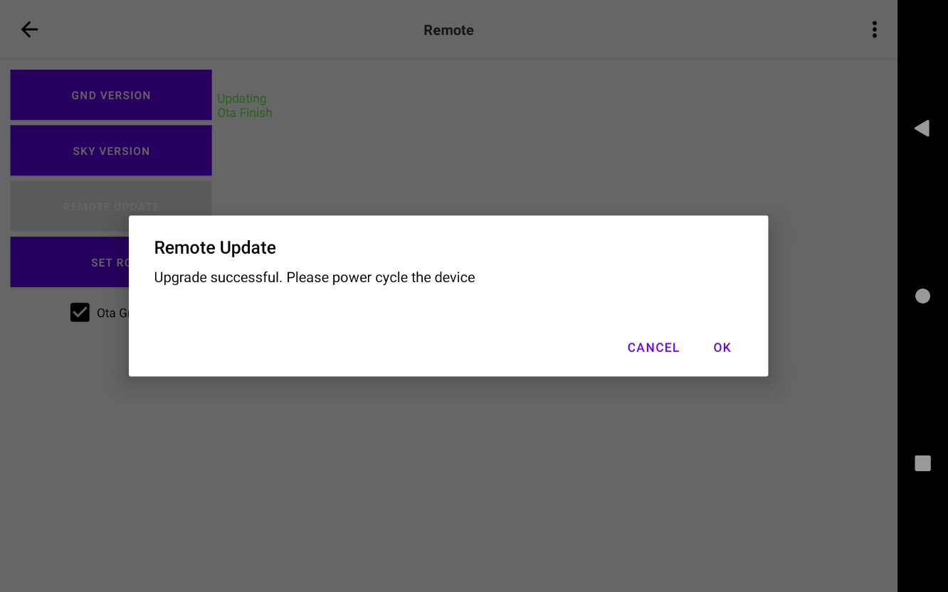 - Заходимо в встановлений «Settings Assistant», далі «RC SETTING», натискаємо на «три крапки» в верхньому правому куті, вибираємо «Remote Update» і натискаємо «REMOTE UPDATE».